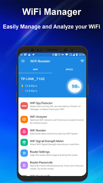 WiFi Manager - WiFi Network Analyzer & Speed Testes un programa gratuito para Android, que pertenece a la categoría 'Utilidades y Herramientas'.